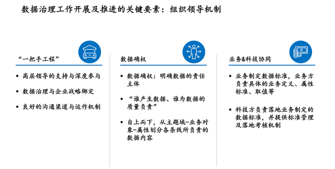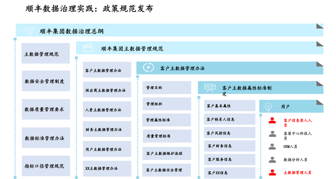 通过相关政策规范(主数据管理规范、指标口径管理规范、数据安全管理政策)来指引数据治理能力的建设。