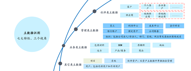 1. 首先从业务视角、管控视角和技术视角三个视角分析,穷尽和识别出公司所使用的主数据;