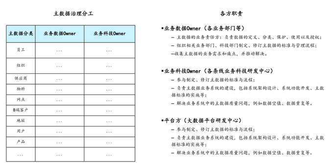 3. 最后对各类主数据明确Owner及职责分工;