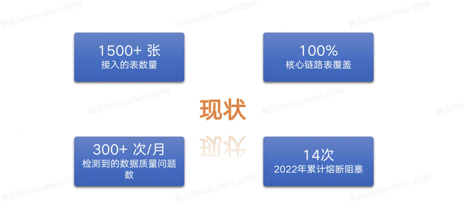 目前通过数据质量管理平台,已经完成了100%核心链路表的数据质量监控覆盖,每月帮助数据开发人员及时发现数据质量300次以上,有效地保障了数据质量和数据链路稳定性。