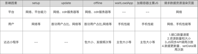 启动性能指标是个综合结果体现,不同阶段会用户、平台以及小程序本身的影响。因此我们以支付宝平台提供的全息检测工具,梳理了各个细分阶段影响因素。