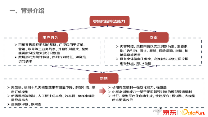 本文将对我们的一些工作进行介绍,并对未来京东零售风控的发展方向进行展望。主要包括以下几部分: