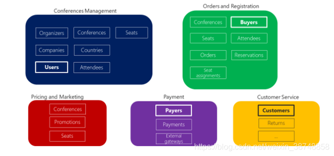“User”(在Conference Management模块中)是一个共享的类,但在不同的模块中的名字不同,含义和用法也不同,成员也不一样(例如,在“Customer Service”里叫“Customer”)。