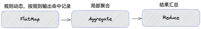 使用map -> reduce -> reduce架构,对规则打标后输出的结果,会先进行一次局部聚合,最后再进行全局规约数据汇总。