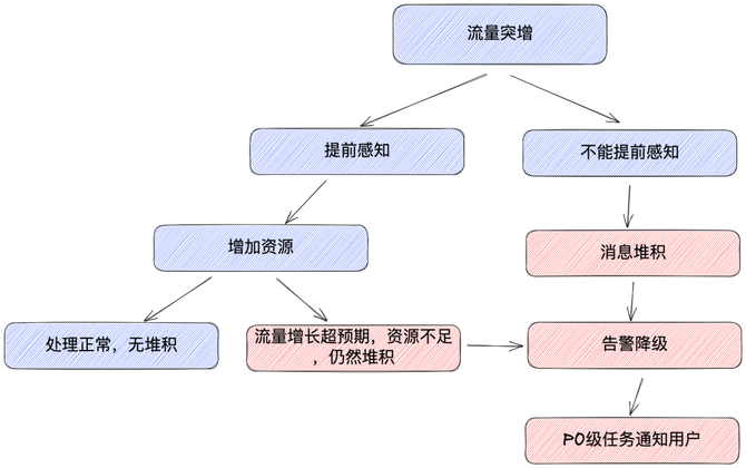 针对可预知的增长情况,我们会提前增加资源,提高任务的消费能力。