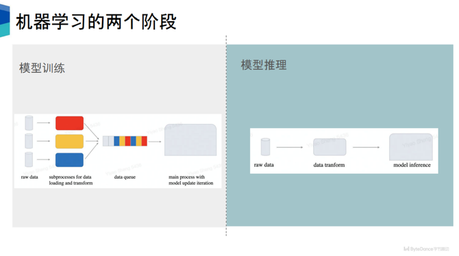 目前主流的机器学习框架,比如 PyTorch、TensorFlow,它们在数据准备和模型计算之间是异步的。以 PyTorch 为例,其会开启多个子进程进行数据的准备。