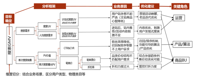 运营+产品角色,影响搜索GMV的关键要素是:用户进入搜索框之后,一系列的功能引导&利益点传递等,核心作用是更好的用户流程体验(不要有卡点)