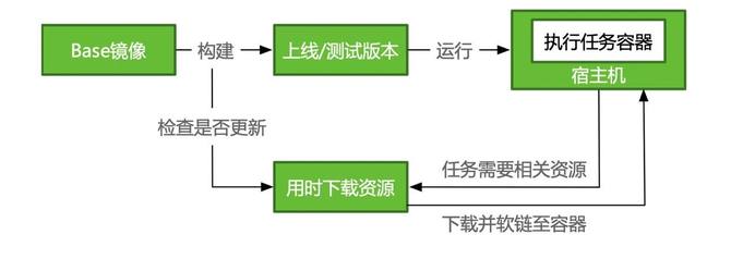 所有可分离资源的最新版本会上传至远端仓库中进行维护。镜像中将记录资源信息,其中包括资源名称、资源所在路径、md5 值、远端地址。通过 md5 值确认资源可用后,将资源软链至容器中,任务可正常运行。