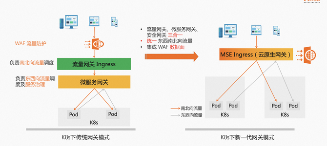 作为面向南北向的公网网关,使用 Waf 防护异常流量是很常规的需求,而且随着互联网环境变得越来越复杂,用户对防护的诉求是持续增强的,常规做法是将流量先接入Waf安全网关,过滤后再将流量转发给流量网关,最后到达微服务网关;那么升级云原生网关后,进一步需要思考的事情是,入口流量的安全能力是否还可以具备?
