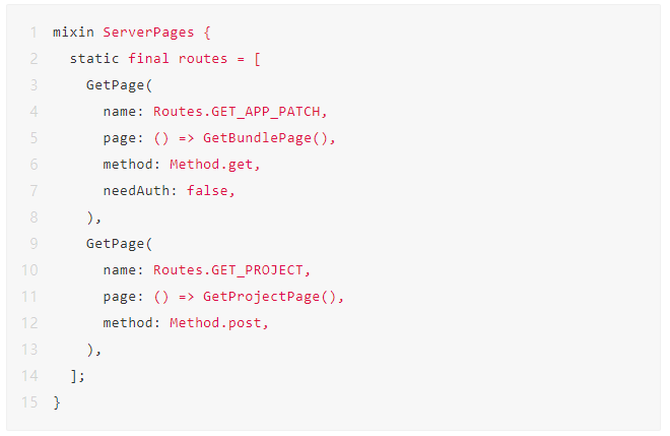 让Dart语言开发后端服务需要一些基础库,比如如何链接远端数据库?如何接收HTTP接口请求?如何处理异常的错误?等等。具备了这些基础库就可以实现一些简单的接口开发了。在Flutter中一切皆可Widget,我们为此保持了与Flutter统一的编码风格,在写后端接口也可以和写前端页面一样一切皆可以Widget。在服务启动的时候需要注册ServerPages,所有的HTTP接口需要在此注册。原理和Flutter中的路由配置类似。其中name表示接口请求的路径,page表示实现这个接口逻辑具体实现类,method表示HTTP请求的方式Get或Post等,needAuth是一个bool值,表示这个接口是否需要登录鉴权,true则会校验Token如果不满足会返回鉴权错误的Response。
