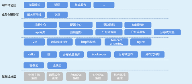 分层分类:监控指标进行分层、分类,由专业团队和监控团队合力丰富监控标准。