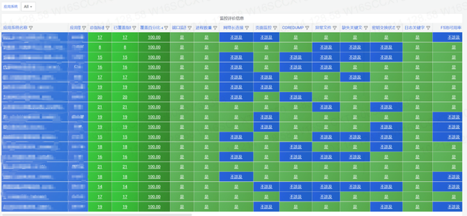 通过上述排名机制,可以获知各个应用系统的监控策略和基线的偏差情况,对于缺失的监控项需及时进行补充部署监控策略,对于非标准的监控项(如个性化阈值、报警级别降低等情况)需进行应用系统的整改以满足标准化要求。