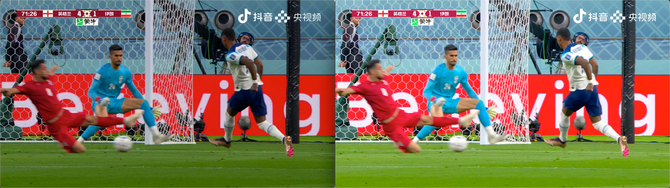 本次世界杯直播使用支持 HDR(高动态范围)设备录制,团队对支持 HDR 的设备增加了 HDR 档位,同时提供了多种不同分辨率/帧率的档位。为了使得观众获得更好的画质体验,团队通过自研的自适应 ToneMapping,视频降噪,ROI,端上超分等算法有效地提升了赛事画质。