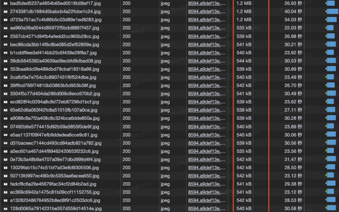 经过三天的线上数据分析发现,大部分耗时在加载图片耗时上。分析耗时较长的商品详情上下链路,发现此类商品的图片大多为500kb+甚至1MB左右的图片,单个商品最多的情况下商品轮播图近52张图,加上商品细节图、商品穿搭效果图等,单个商品详情页面首次打开竟然需要加载80+张图片,对于浏览器而言是灾难性的。