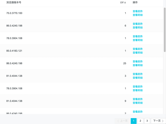客服职场的环境是非常复杂的,浏览器使用的多样性以及不一样的版本都会带来不可预知的问题,导致前期很多的客服反馈,研发同学投入了大量的时间去做问题定位,最终发现是浏览器版本过低导致。所以针对这个情况,我们定期汇总了浏览器版本的使用情况,告知给业务,让业务推进各职场浏览器版本的升级和统一。