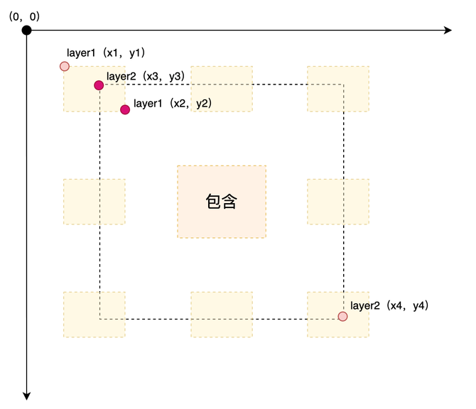 布局关系之父子关系:通过坐标计算,对于有相交关系的或包含关系的元素之间,则构成了父子关系。父子关系算法示意图: