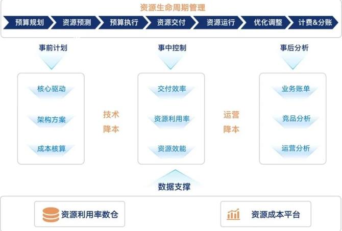 ✓ 通过事前计划、事中控制、事后分析多项举措,将成本的指标纳入业务方案和商务采购的考量,成本控制贯穿在整个资源生命周期的管理。