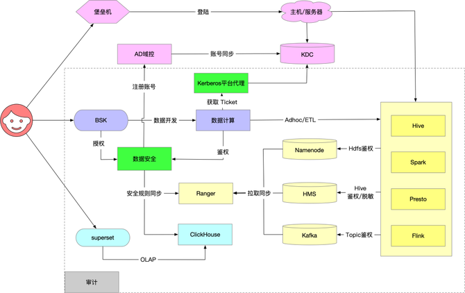 Berserker接入了公司统一身份认证,在新建账号时,将同步账号到公司AD域控管理,大数据组件通过Kerberos进行身份认证。