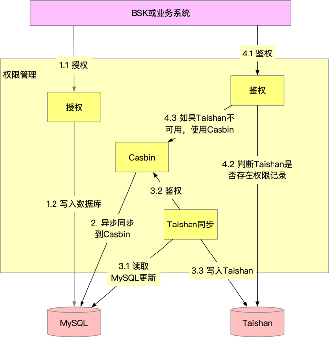 同步Taishan:通过消息队列异步同步权限策略到Taishan,期间使用Casbin进行鉴权