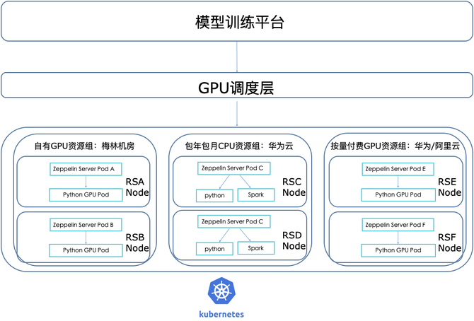 K8S 集群主要构建在华为云,在GPU场景下会单独抽离一层GPU调度层,不同地区或者不同规格的GPU划分到不同的资源组,数据库中对这些GPU机器进行类型区分。比如针对GPU按量付费场景,在启动GPU任务时候,会选择不同的资源组,从资源组中选定特定的GPU节点,会为GPU和notebook建立绑定关系,通过调用运维提供的GPU实例开机接口启动GPU节点,在任务空闲回收或者手动停止实例的时候调用运维停机接口,对GPU机器进行关机处理。
