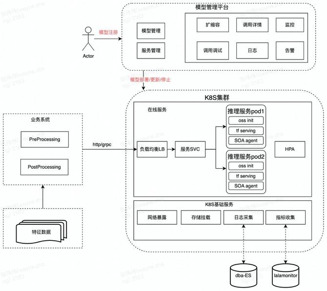 AI整个流程中,模型在线推理是AI应用的最后一环,模型比较小的情况下可以直接嵌入到后端业务代码中,作为一个常见的接口对外提供服务,但是随着模型越来越大、模型更新越来越频繁,有必要对模型服务进行独立拆分,独立的对模型进行更新和发布,模型训练框架众多、模型格式多样以及在线服务对服务稳定性要求高、对服务延迟比较敏感,但总的来说大部分模型的模型管理、模型部署、服务的更新具有通用性,具体的不同在于可以借鉴底层镜像进行区别的处理。因此有一个通用的模型部署管理平台能够避免业务在应用模型推理时所带来的重复性建设,大大加快模型服务的落地。为公司AI应用能够大量落地,大数据智能平台组开发了统一的模型在线服务平台。一线互联网企业主要是基于云原生、服务网格去打造统一的模型在线推理平台,因此智能平台组也同样是基于云原生K8S去实现基础设施到服务监控告警链路的整个流程的建设。