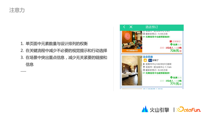 注意力,这里指的是单页面的元素数量与设计排列的权衡。如果要更加简单,那么信息应该是非常聚焦的。相反,如果一个页面进来全部都是五花八门的图片,或者是很多突出的亮点、按钮,那么用户可能根本分不清你的重点是什么,也不知道该怎样去做出行动。