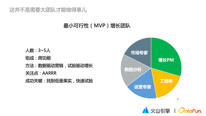 这并不是需要大团队才能做的工作,其实只要 3~5 个人就可以了。而且如果成熟度比较高的产品,像火山引擎的 A/B 测试这样的产品,会非常高效。