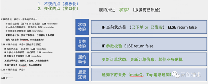 针对上节最后提出的问题,我们用抽象的思维,思考在状态流程履约中,哪些是不变的点、哪些是变化的点。