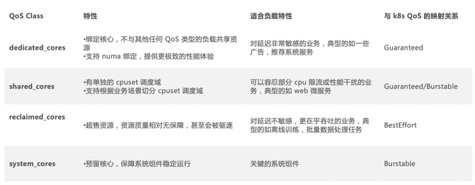 多维度的资源隔离能力:基于 cgroup, rdt, iocost, tc 等能力,实现不同混部场景中对 cpu,内存,磁盘,网络等多种资源的有效隔离,保障在线业务的 QoS 不受影响。