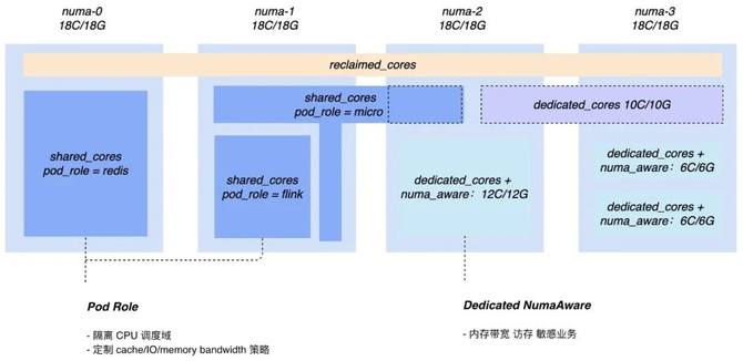 微拓扑感知调度:感知节点上 CPU,内存,异构设备的微拓扑,基于更细粒度的微拓扑信息完成资源分配,满足高性能业务的 QoS 要求。