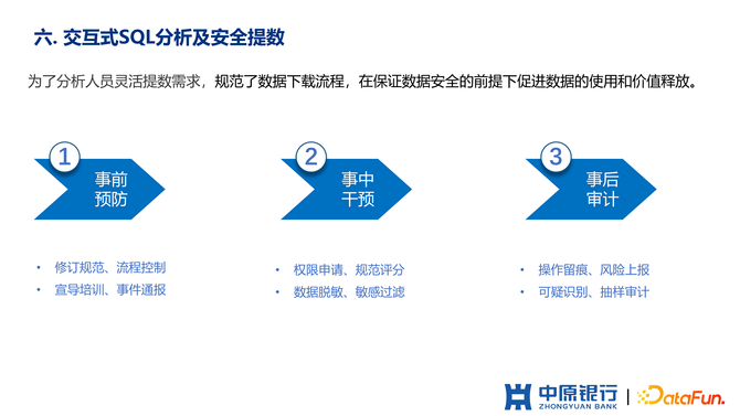 (1)事前预防。制定取数规范,进行安全宣导、事件通报等等。