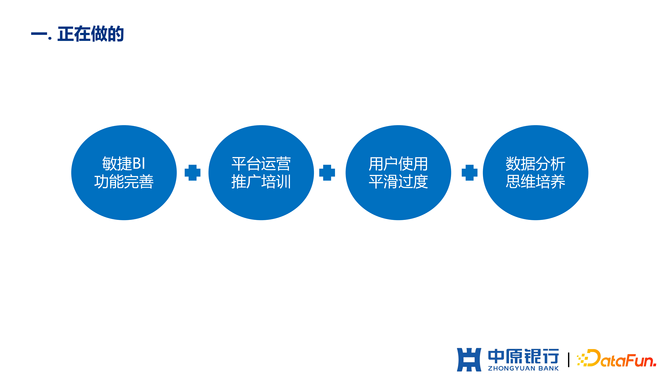 从 2019 年开始,为了实现之前提到的业务目标,中原银行开始建设整个的敏捷 BI 体系。