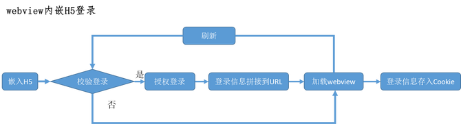 一开始就需要登录态的情况,具体来讲就是在加载webview之前,首先进行授权登录,然后把登录信息拼接到url里面,再去来加载webview,在h5里面通过adapter来把登录信息提取出来并且存到cookie里,这样h5一进来就是有登录态的。