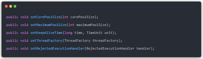 动态参数调整主要依赖ThreadPoolExecutor提供的如下的set方法: