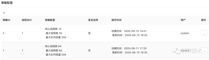 配置后台主要负责管理线程池配置修改及配置下发,可对线程池核心参数corePoolSize、maximumPoolSize、workQueueCapacity进行动态修改,无需业务服务上线。为了能够在线程池出现异常时自动切换备用参数方案,我们最终采用配置后台为实现方案。如无此需求可使用Apollo,Nacos等配置中心实现成本更小。