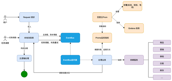 核心业务流程(下单、支付、核销...)降级处理,依赖服务资源(Redis、MQ...)降级处理,保障用户体验。