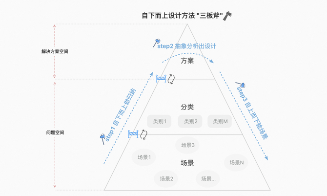 我们从实践总结出自下而上设计的"三板斧",作为框架指导设计过程: