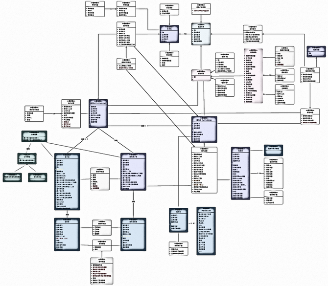 看个例子:下图的领域模型能找到清晰的子域边界吗?在模型中找出连线少部分画分界线,两边连线越少说明边界越清晰。下图很难找出清晰且适合边界,但是设计方案里分了4个子域,这样的域划分是值得推敲的。(PS:看图说话是领域划分里一个直观好用的方法)