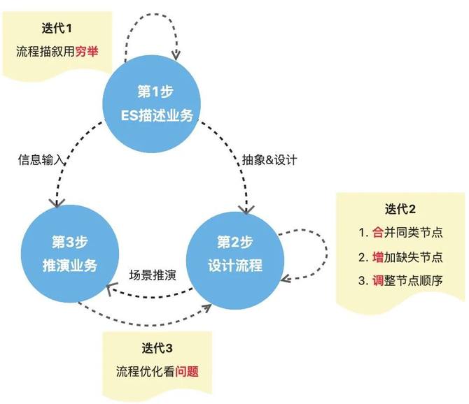 推演:用步骤2设计的流程推演业务,主要评估执行顺序和节点职责是满足业务需求。