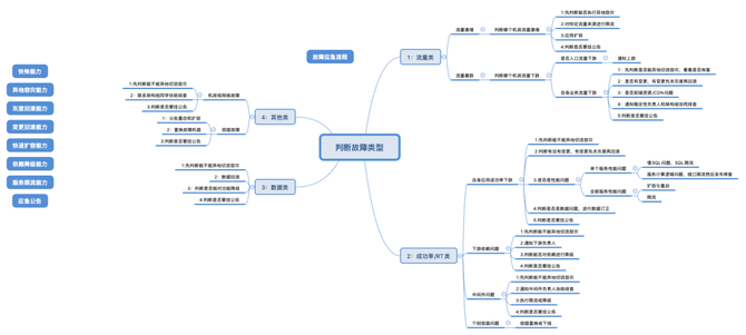 应急处置的方案有很多,但是在处理线上问题时应该是有优先级的,先做什么其次做什么最后做什么。下图是整理的一份应急处置SOP参考文档。它不是操作手册,不能在出问题时再去查阅,而是每个人脑子里应该有这样一张图,对于线上应急处理流程烂熟于胸。
