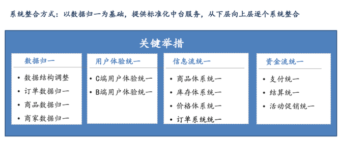 在完成API读写切换之后,基于主数据的功能基本完成了聚合,此时就需要将通用功能进行系统化的统一,比如:统一的商家管理后台、统一的运营后台、统一的C端交易体验等,系统层级的统一整合目的是为了给使用者一个统一的操作界面,体现平台的专业性。