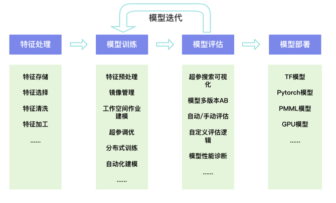 包括特征预处理、镜像管理、工作空间作业建模、超参调优、分布式训练、自动化建模。