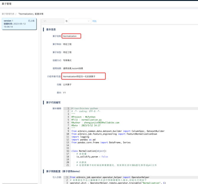 特征清洗的例子如下,AI平台先将部分特征工程逻辑算子化,如下图Normalizaiton为归一化算子。