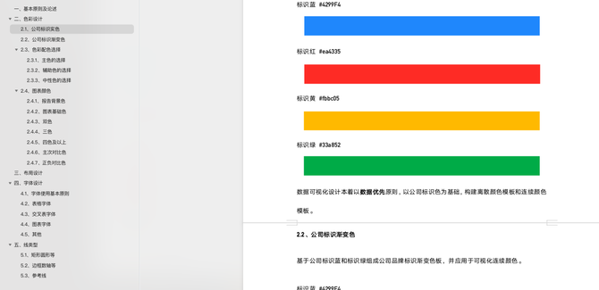 同时,在产品内形成的主题模板也可以自由地导入导出,进行分享,下图为视觉管理规范稿示例。