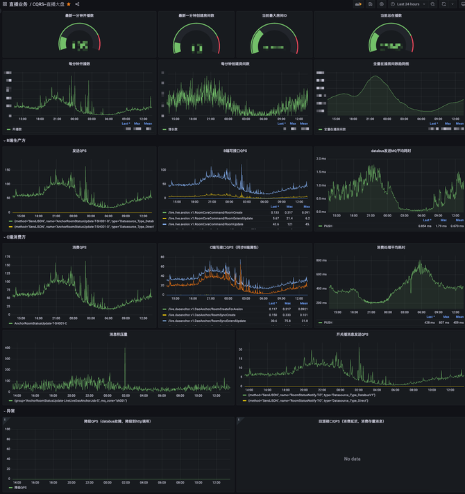 保障整个CQRS系统,需要“配套设施”,其中的首要利器就是做可观测性建设(Observability Construction),基于现有的基架能力,我们搭建了直播CQRS监控大盘,从生产方到消费方,全链路监控核心指标。