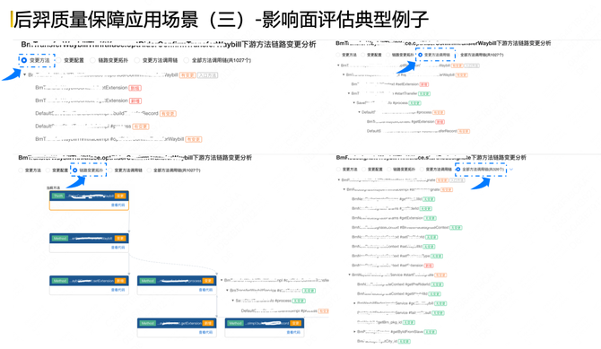 跨端服务的影响面评估,比如一个服务内部的调用链路和在不同的微服务之间的跨端变更点之间的链路影响是什么样子的,都能够做到更精准地影响范围评估能力。