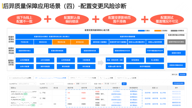 基于这样的核心痛点问题,后羿系统重点从三个层面做了关于配置变更风险的核心能力建设: