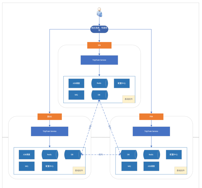 Trip火车票根据以上因素和自身业务需求发展方向综合考虑,并进行详细的市场调研和分析,做出可用区选择:把新加坡(SIN)和法兰克福(FRA)作为火车业务出海部署的数据中心。