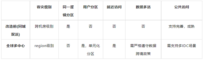 与改造前架构特点相对比,如表格所示: