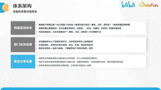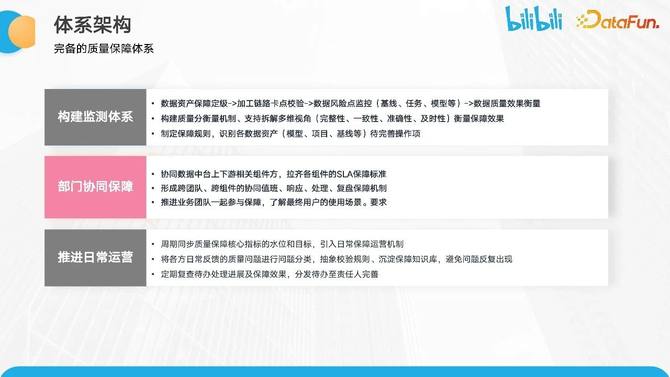 推进方面的原因。一旦确立了相关标准,我们需要将这些准则明确地推进到各个工作的细节中,以确保历史相关问题不再重现。此外,长期的可持续优化策略对于数据质量的保障也非常重要。